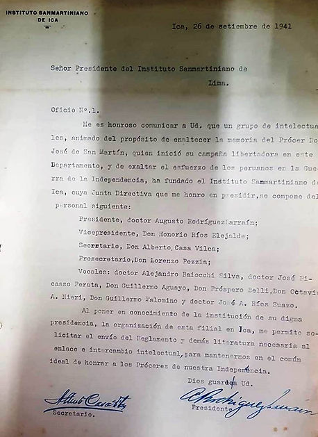 HIMNO DEL INSTITUTO SANMARTINIANO DEL PERÚ"HIMNO DEL INSTITUTO SANMARTINIANO DEL PERÚ" Fundado en Lima, el 23 de Febrero de 1935 Música: Rosa M. Ayarza de Morales Letra: Orietta Murillo de Samanez El Instituto Sanmartiniano cofre sagrado del Perú donde guardamos celosamente La memoria del gran Libertador Con toda admiración y gratitud al insigne José de San Martín eminentes e ilustres peruanos decidieron fundar la institución En constante labor siempre fecunda el Instituto y todas sus Filiales rendimos culto al Santo de la Espada y a los Próceres de la Independencia. Fomentando el estudio de la historia espíritu patriótico y civismo cultivamos respeto a la Bandera inspiración genial de San Martín Coro Sigamos el ejemplo de quienes plasmaron en hechos un ideal y hoy por eso los sanmartinianos prometemos eterna lealtad.
